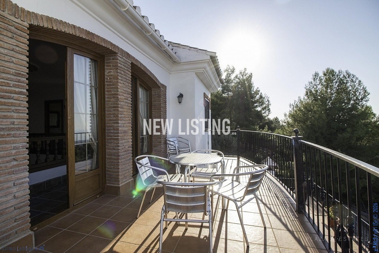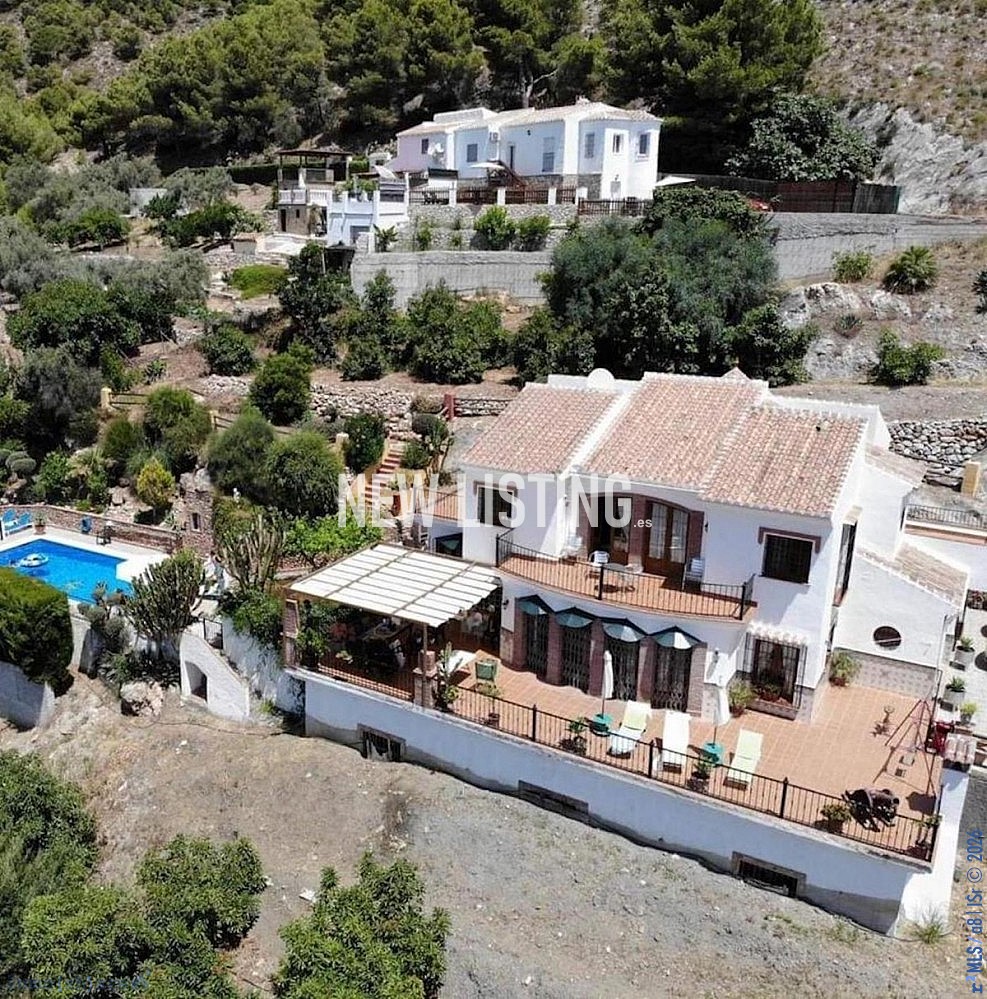 The 400 m2 property is currently used as a holiday rental property with a tourist licence, but was originally designed as a rural family home, with separate accommodation for the owners or housekeepers. This wonderful villa is located in a beautiful quiet area in the heart of the national park, between Frigiliana and Acebuchal. On arrival at the property, there is plenty of parking behind the front door. From the front door, the property opens into a large lounge and adjacent dining room with a lovely central feature of a balcony. The living room is spacious, and offers plenty of natural light. Patio doors lead out to the large south facing terrace with jacuzzi with stunning mountain and countryside views, leading to the fully fitted kitchen, or to the BBQ area and private pool. The ground floor of the villa has 2 double bedrooms with fitted wardrobes and en-suite bathrooms. There is also a separate guest toilet. The upper floor has a double bedroom with a private terrace, two double bedrooms with a shared terrace overlooking the pool, and the fourth double bedroom has a juliet balcony. There is also a large basement with a large separate guest property, with separate entrance. The exterior features a private garden that stretches over 5,500 square meters with several fruit trees and a fully fenced plot. Despite being located in a rural area, the property has good access and is only a 5-minute drive from the picturesque village of Frigiliana. The possibilities are endless as this villa offers a lot of potential as a country hotel, rural retreat or large family home. Contact