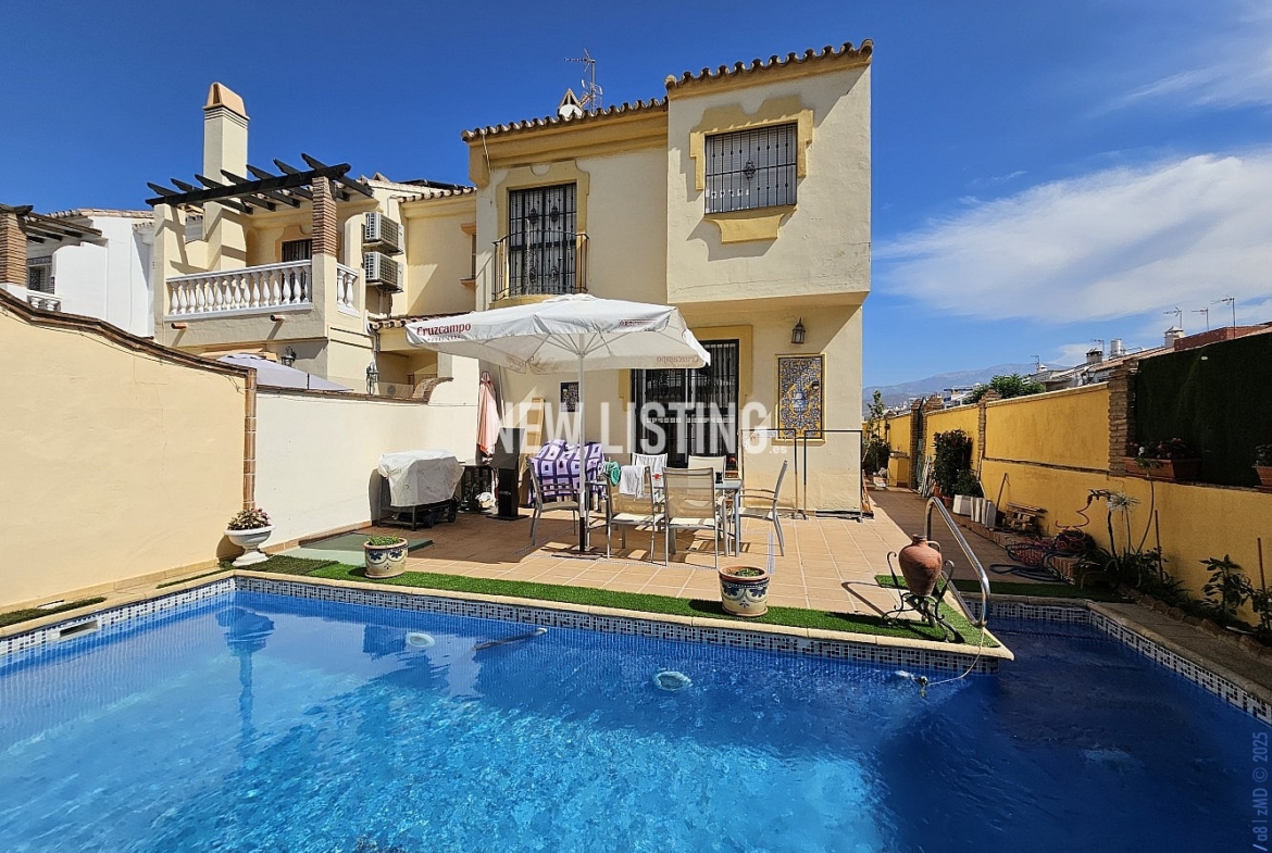 Semi-detached villa with private pool in El Tomillar, Torre del Mar Spacious semi-detached villa of 330 m2 built, with private garden of 80 m2 and swimming pool, located in one of the best urbanizations of Torre del Mar: El Tomillar. The house is distributed over 4 floors: - Ground floor: Living-dining room with direct access to the garden and pool, separate kitchen, dressing room, toilet and backyard with laundry room. - First floor: 3 bedrooms, full bathroom and two terraces. - Semi-basement floor: 4 additional rooms, perfect as bedrooms, study area or games room. -Basement: Large garage with capacity for several cars, as well as a lounge-wine cellar ideal as an area for meetings or celebrations. Unbeatable location, just a few minutes from all services: pharmacy, Mercadona, cafes and El Ingenio shopping centre. Easy access to the Mediterranean motorway and less than 1.5 km from the centre of Torre del Mar and its wonderful beach. An ideal home for families looking for space, comfort and a good location.